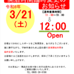 開店時間臨時変更のお知らせ