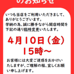 開店時間臨時変更のお知らせ
