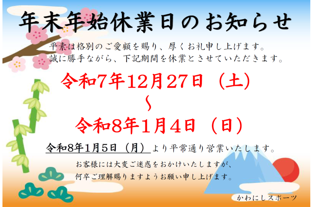 年末年始休業のお知らせ